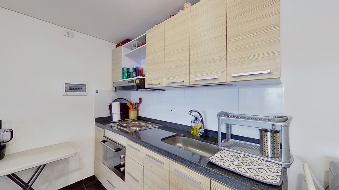 Apartamento en venta de 51m2, con vista interior, ubicado en un 2do piso ( Apto 219), acceso por ascensor, parqueadero propio cubierto (21). Consta de 1 habitación, 2 baños, sala comedor, cocina integral y zona de lavandería. Tiene piso laminado en habitaciones, zona social y cerámico en baños y cocina. El edificio cuenta con salón comunal, zonas verdes, zona bbq, terraza, gimnasio y vigilancia privada las 24 horas. Cerca a centro comercial San Martín; cerca a almacenes de cadena como Éxito, D1 y Oxxo; cerca a colegio Champagnat; cerca a universidad Javeriana; cerca a estación de Transmilenio Avenida 39 y paraderos del SITP; Vías de acceso por Avenida Carrera 7 y Avenida Caracas. VALOR DE ADMINISTRACIÓN POR CONFIRMAR