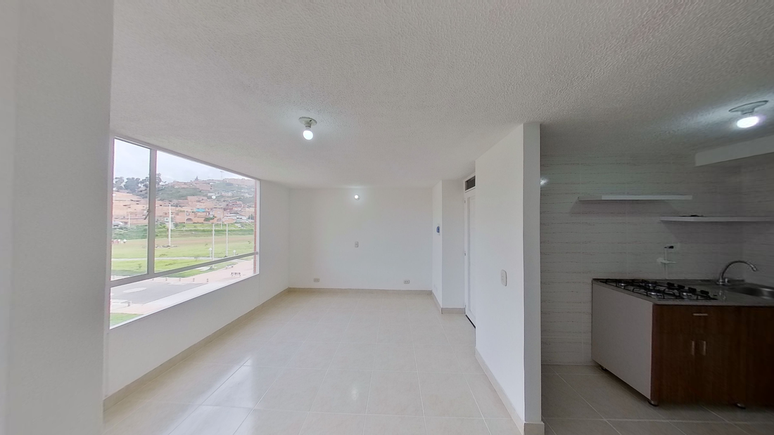 Apartamento en venta de 53m2, con vista exterior, ubicado en un 4to piso (Torre 3 Apto 402), acceso por escaleras. Consta de 2 habitaciones, 1 baño, sala comedor, cocina integral y zona de lavandería. Tiene piso ceramico en todas sus zonas. El conjunto cuenta con zonas verdes, zona infantil, salon social, parqueadero comunal y vigilancia privada las 24 horas. Cerca a almacenes de cadena como Surtimax, Tiendas D1 y Ara; cerca a colegio Superior Maria Auxiliadora y colegio Bolívar de Soacha; cerca a Universidad de Cundinamarca Extensión Soacha y Uniminuto Centro Regional Soacha; cerca a rutas alimentadoras y paraderos del Sitp; Vías de acceso por la Calle 9 sur y vía Indumil.